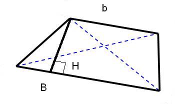 2 - trapeze : un quadrilatère qui a deux cotés parallèlles [(B+b) x H] / 2 | |